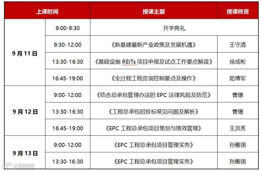 ▶上课时间:2020年9月11日-13日 9:00-12:00 13:30-16:30