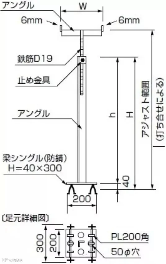 3、采用定制的钢制支撑构件,混凝土表面处需做防锈处理。