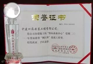 9、闽江杯:福建省装饰行业设立的建筑装饰工程