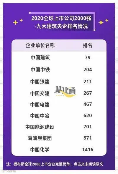 福布斯公布数据以美元为单位,汇率波动关系,数据虽有所出入,但与企业年报数据异曲同工。此前,通哥发文《八大建筑央企主要经济数据比较及2020最新走势》中对央企各项年报数据进行了对比,在此不再赘述。