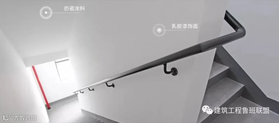 ☛ 楼梯间顶棚采用仿瓷涂料、墙面采用乳胶漆饰面