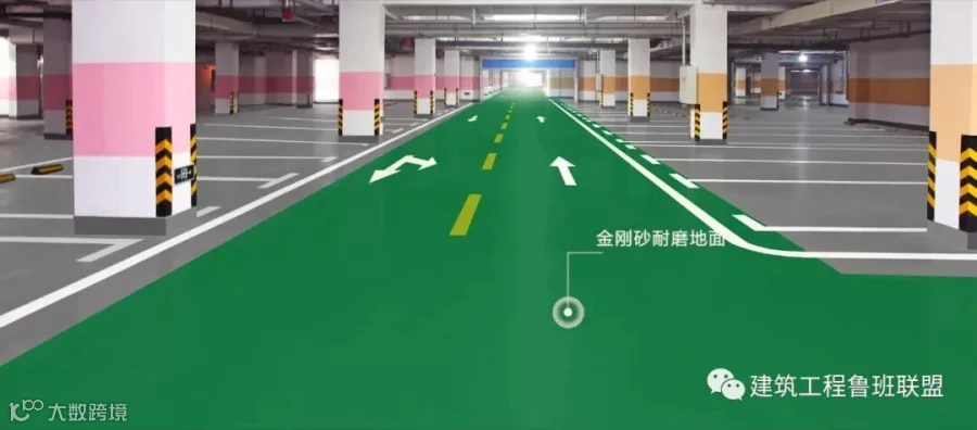 ☛ 地下室采用金刚砂耐磨面层,平整靓丽、色泽均匀,交通标志设置准确明显