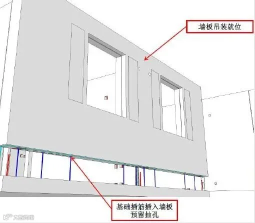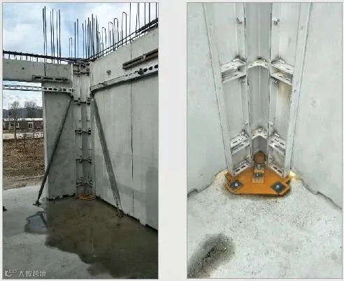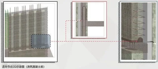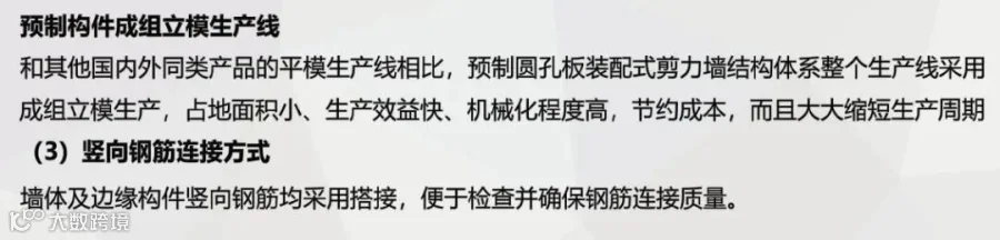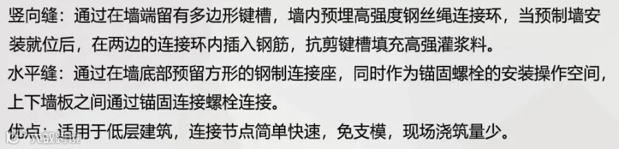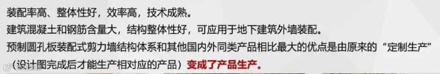优点:上下层剪力墙现浇连接,内外墙板与内芯整体受力;预制部分代替了部分模板,可全自动化生产。