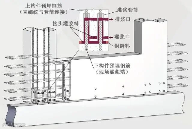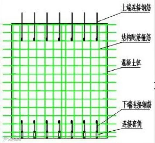 灌浆套筒连接适用大直径钢筋,适宜钢筋集中连接,可用直接或间接连接形式。