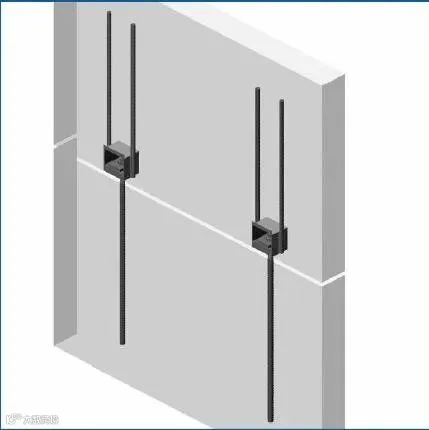 双皮墙连接工厂预制两片板叠合,两片墙之间内芯预留后浇混凝土区域。