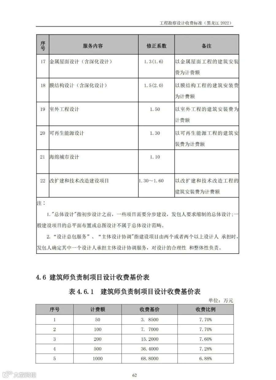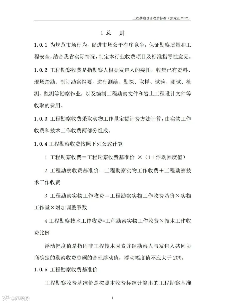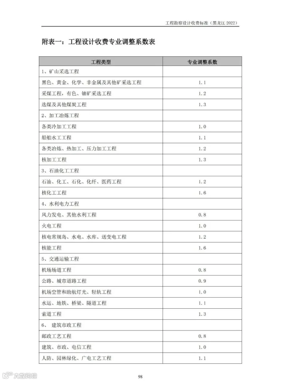附件1:《黑龙江省工程勘察设计收费指导标准》(征求意见稿)