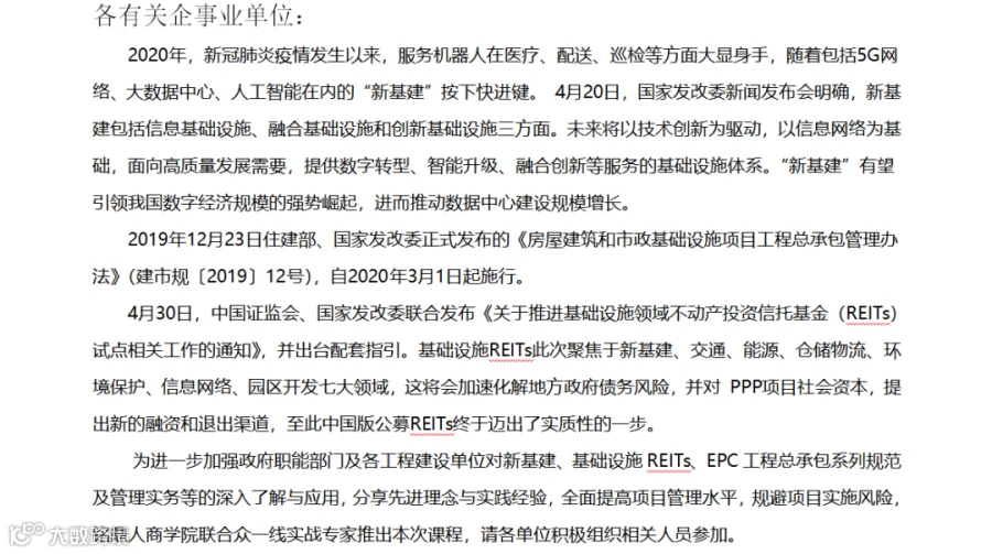 各位同学,您好!《新基建下EPC工程总承包与全过程工程咨询实战型高级研讨班》 第51期定于2020年8月14日-16日开课。请您提前联络教务老师,按时上课。
