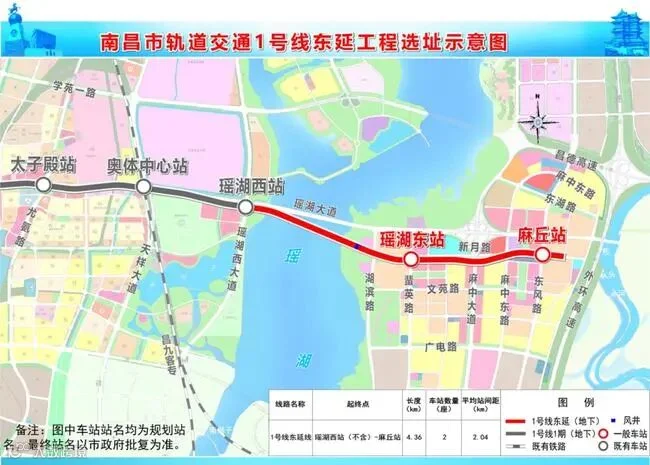 项目概况:南昌市轨道交通1号线北延工程起于昌北机场站,总体由北向南,经赣江新区、南昌市经开区,沿机场进场路、规划赣新大道、经开大道、昌北大道、庐山中大道、规划军民友谊路,终于一期工程双港站(不含),线路总长约16.969公里,其中地下线13.524公里,高架线(含过渡段)3.445公里;全线共设8座车站,其中地下站6座,高架站2座,平均站间距2.099公里。最大站间距为6.773公里,最小站间距为0.858公里;新建昌北停车场、昌北主变电站及一座中间风井,共享地铁大厦控制中心。