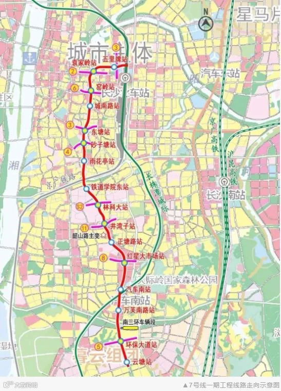 最新消息:在长沙地铁7号线的施工招标中,可以了解工期安排是2021年开始开工,计划于2027年通车试运行。11月1日,长沙轨道交通7号线一期(云塘~五里牌段)环评报告正式取得湖南省生态环境厅批复。