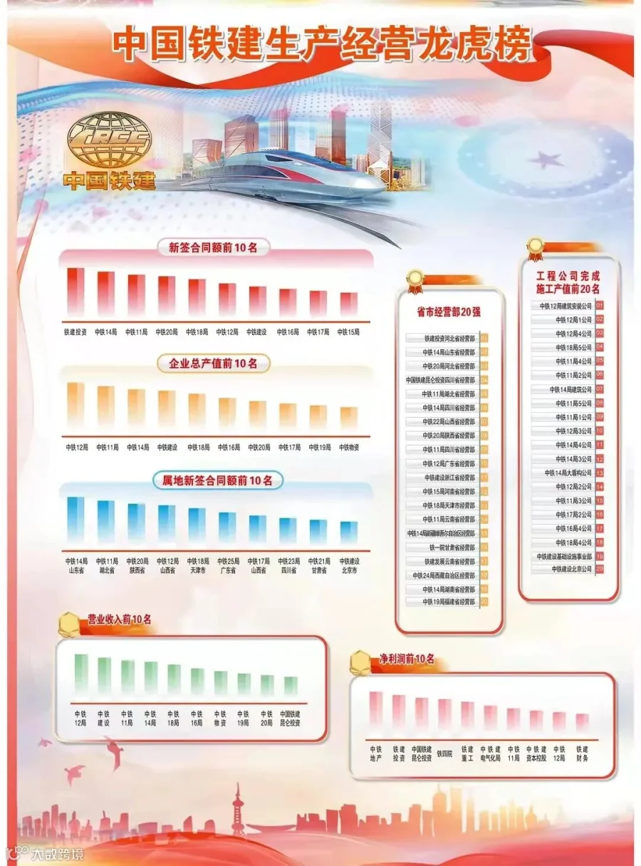 近日,中国铁建股份有限公司发布2021年所属单位生产经营龙虎榜。榜单如下,看看哪些公司最强大?