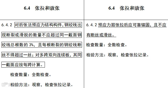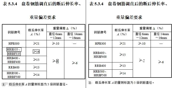 2、钢筋分项:取消HRB335钢筋验收要求,最大总伸长率改为最大力总延长率,钢筋重量偏差作了细微修正。