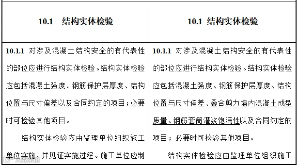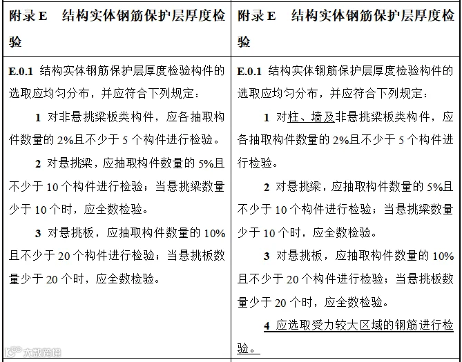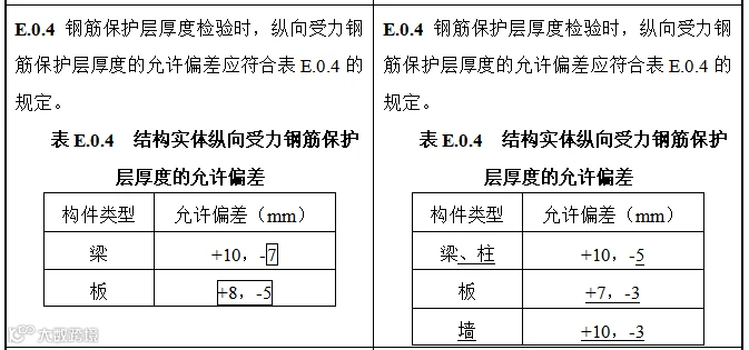 本次50204修规对于施工单位来说,要求更高了,如结构实体检测,特别要提醒的是钢筋保护层厚度要求,增加了墙、柱体钢筋保护层厚度检测项,钢筋保护层允许偏差值比原基础更严格。