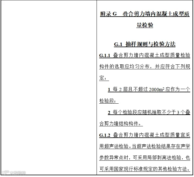 8、新增附录G叠合剪力墙内混凝土成型质量检验