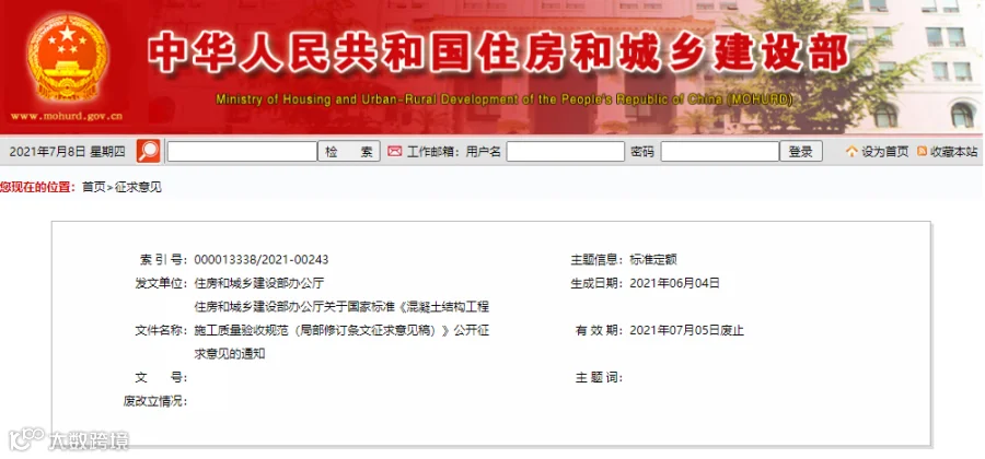 住房和城乡建设部办公厅关于国家标准《混凝土结构工程施工质量验收规范(局部修订条文征求意见稿)》