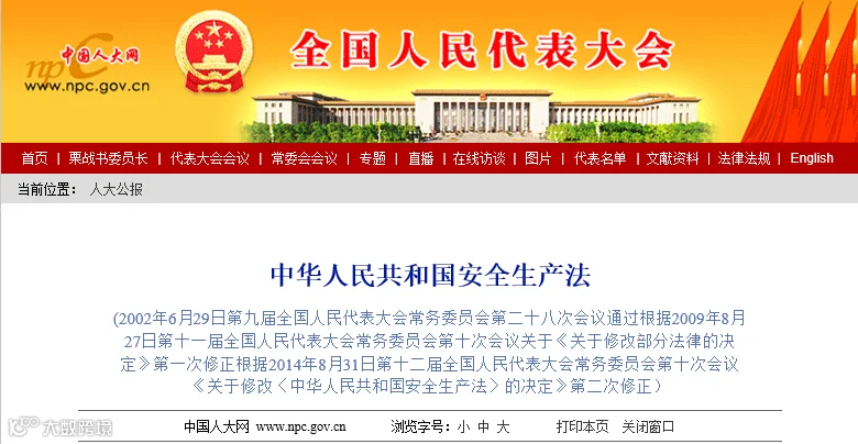 2021年6月10日,中华人民共和国第十三届全国人民代表大会常务委员会第二十九次会议于通过《全国人民代表大会常务委员会关于修改〈中华人民共和国安全生产法〉的决定》,现予公布,自2021年9月1日起施行。