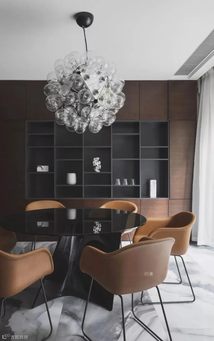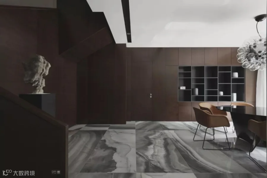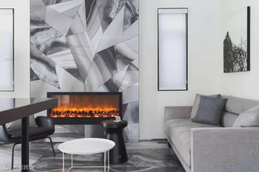 作品选用意大利REX瓷砖汉妮玉火山岩,产品以天空云彩变幻的动态过程作为灵感,将这种自然的美感融合天然玉石通透温润的质感,让空间尤为优雅、奢华,带给人居环境高贵清丽的美学享受。