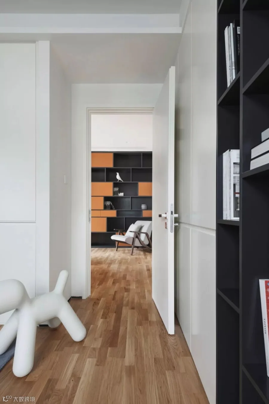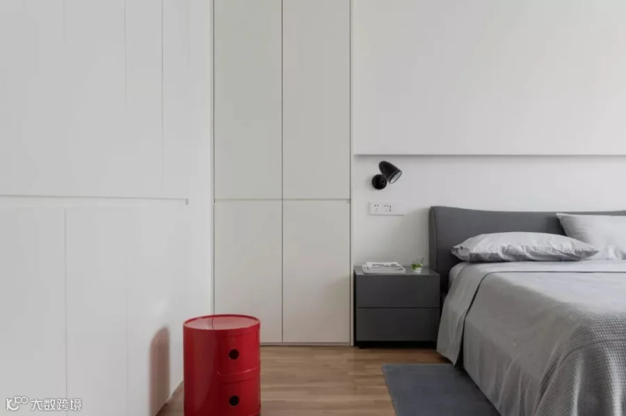 空间规划由一道主要的白色柜体隔开