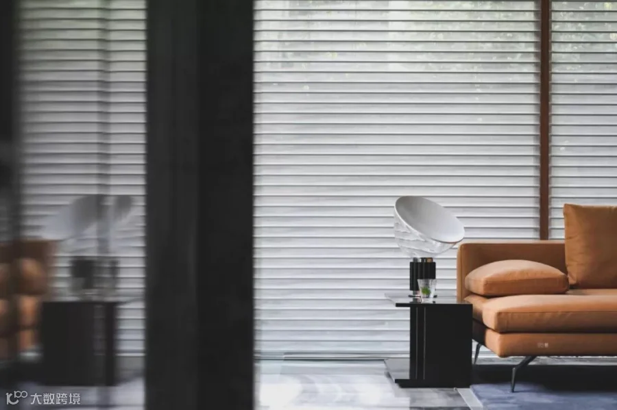透过白色的百叶帘