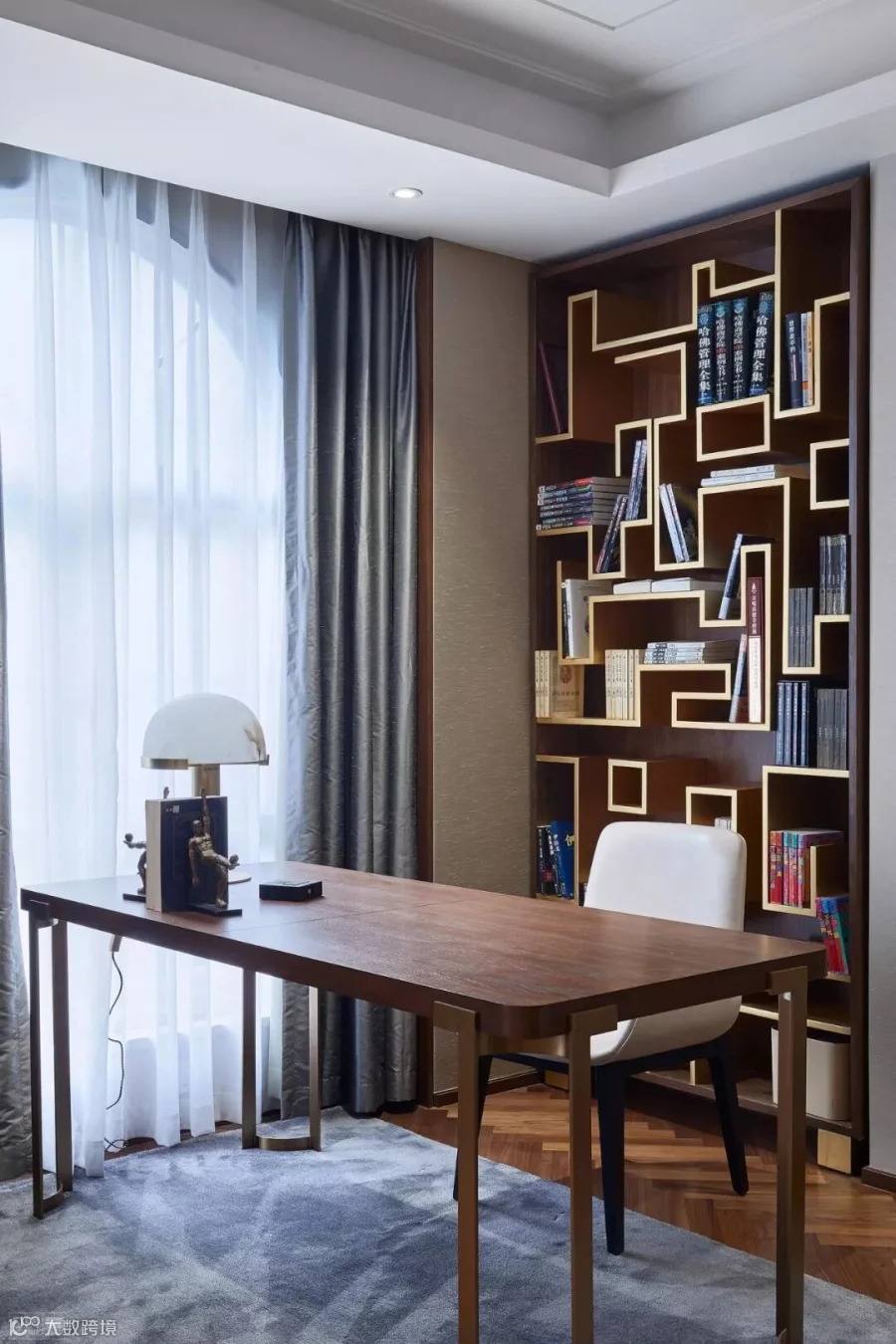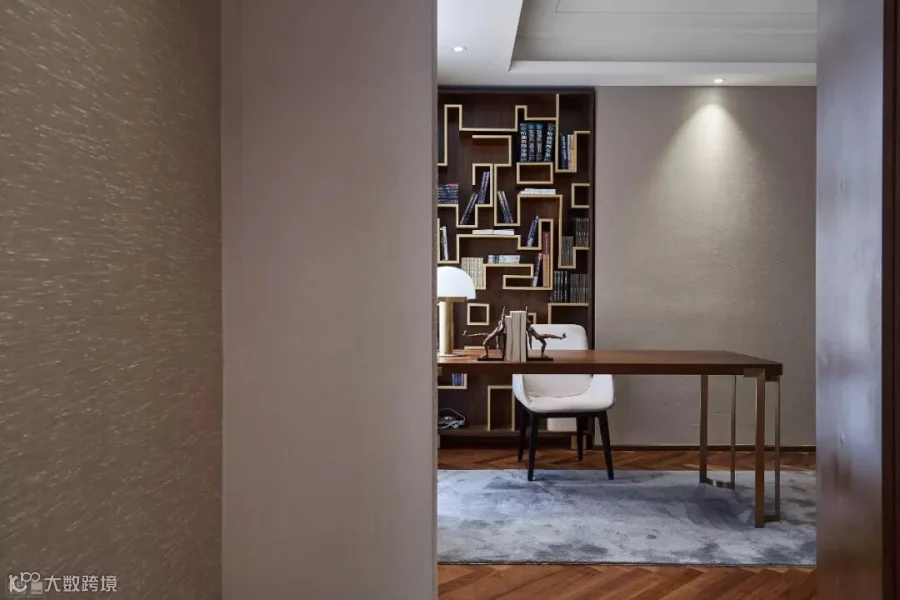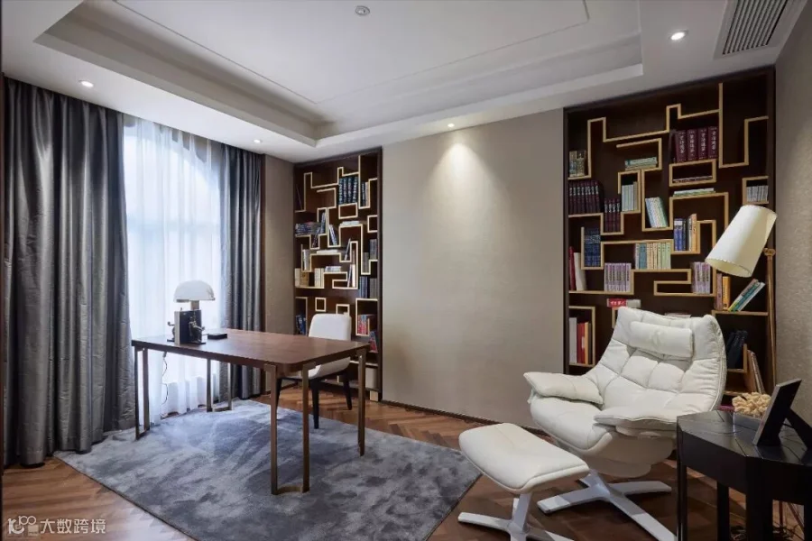 摆一套书桌椅,再一个造型独特的大书柜,