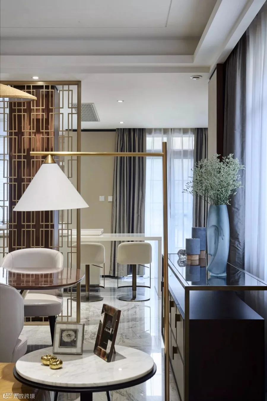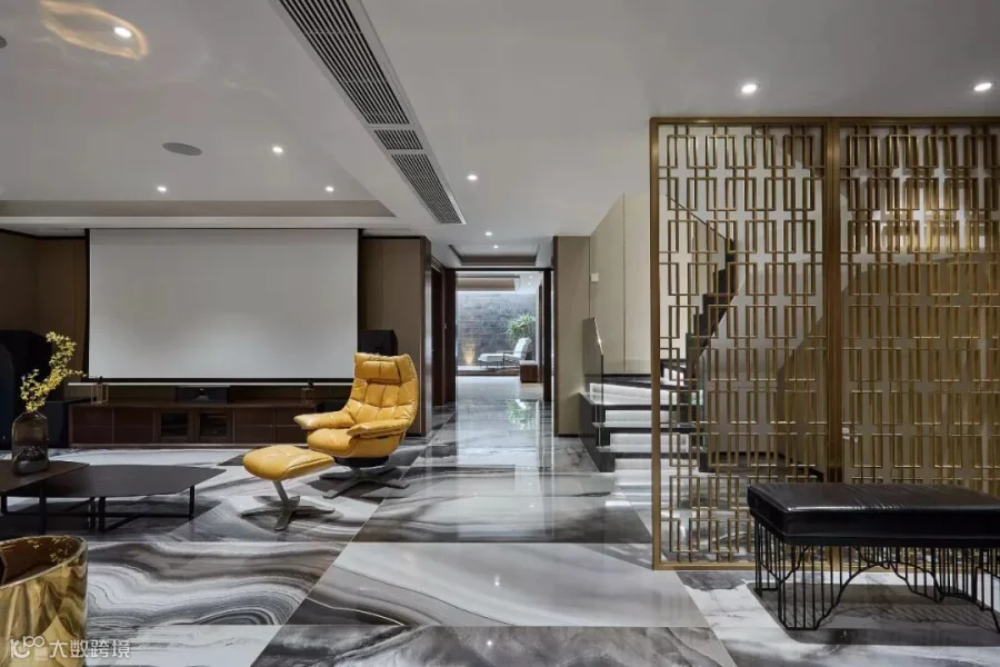 在经过铜的镂空屏风装饰后,