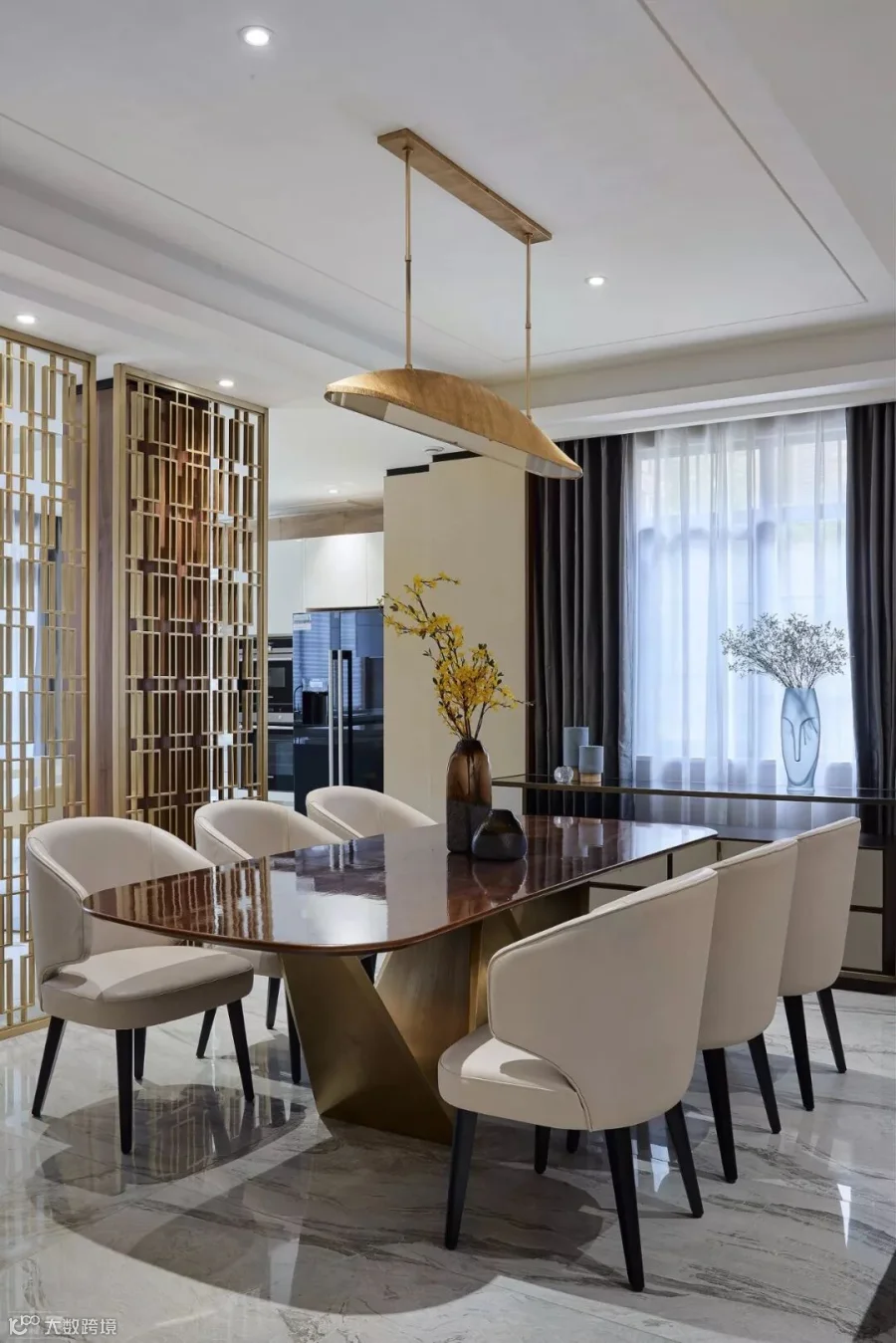 搭配简洁的软饰、精致的吊灯,