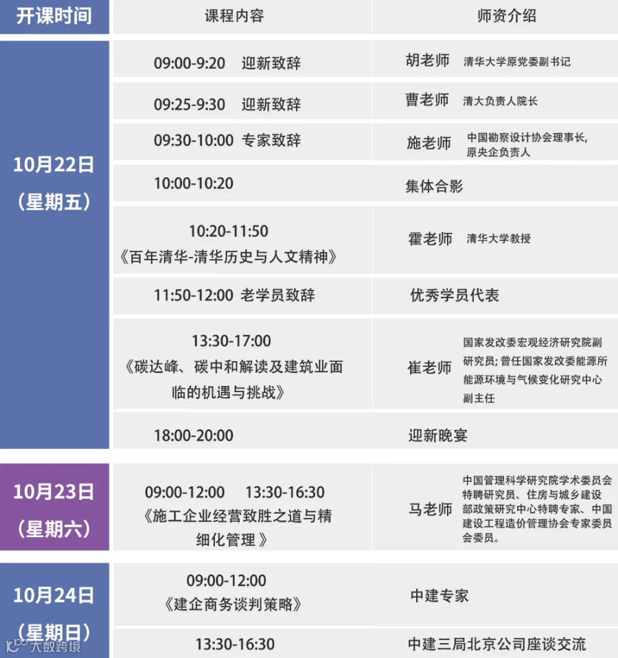 10 月 22-24 日,我们将欢聚一堂,共同见证这一承载着荣耀与梦想的时刻,清大(建筑业)总裁研修班38期开学典礼,期待您的加入!