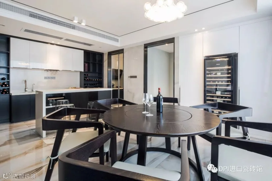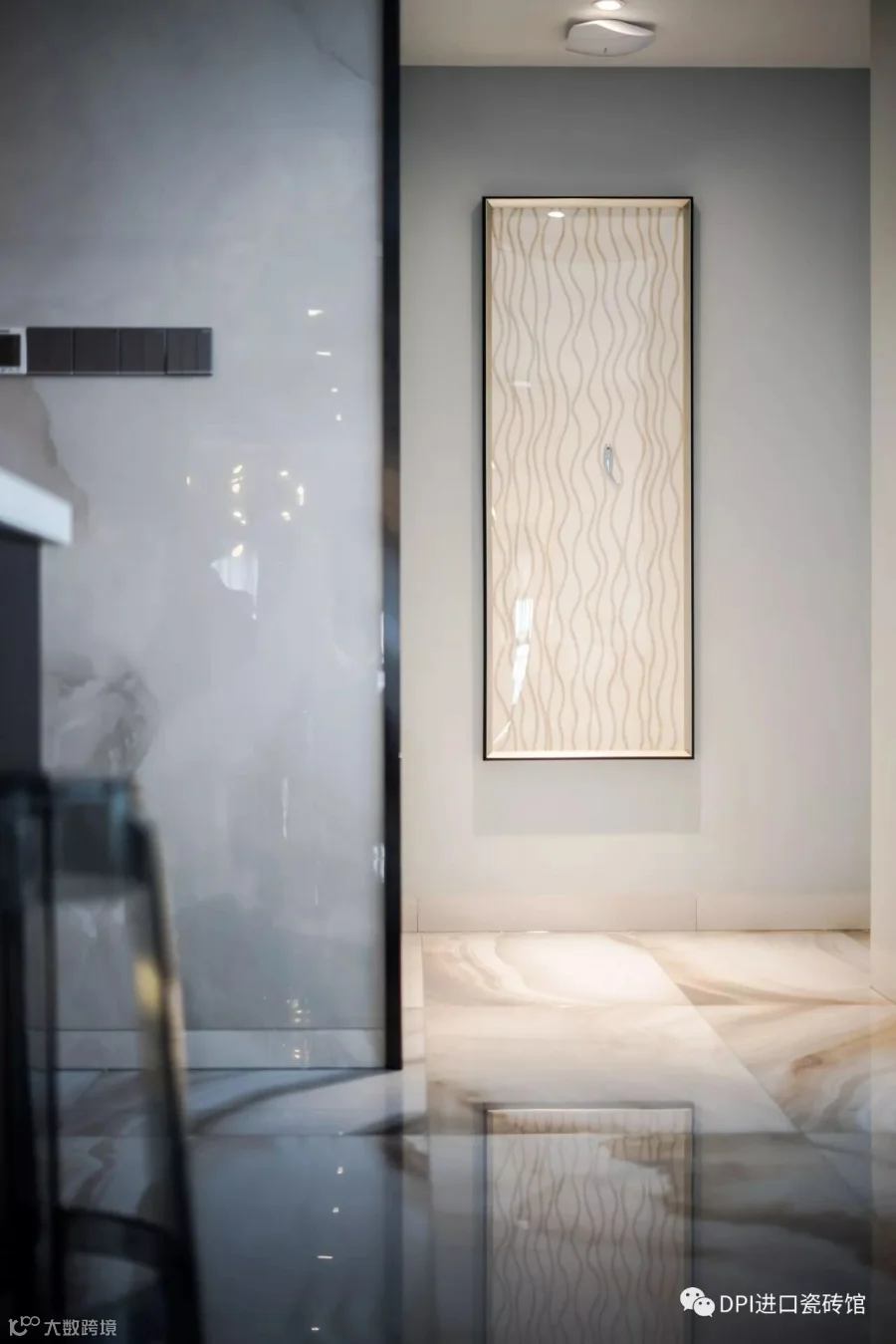 黑白色调的搭配是永恒的经典。嵌墙白柜宛如钢琴音键,妙音绕指,用心演奏动人旋律,探索音乐中的优雅。每一处地砖的纹路都宛如涌动不息的湍流,把空间衬托出灵动自然、勃勃生机,感受大自然与空间的完美融合。