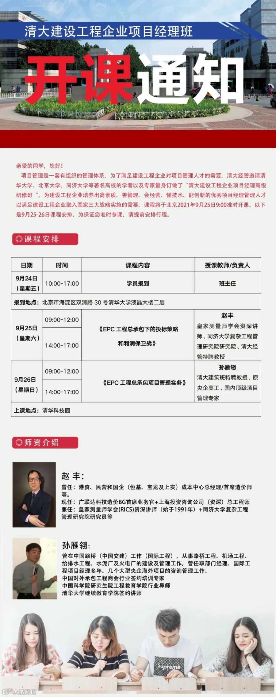 欢迎加入:清大建设工程企业项目经理管理人才高级研修班