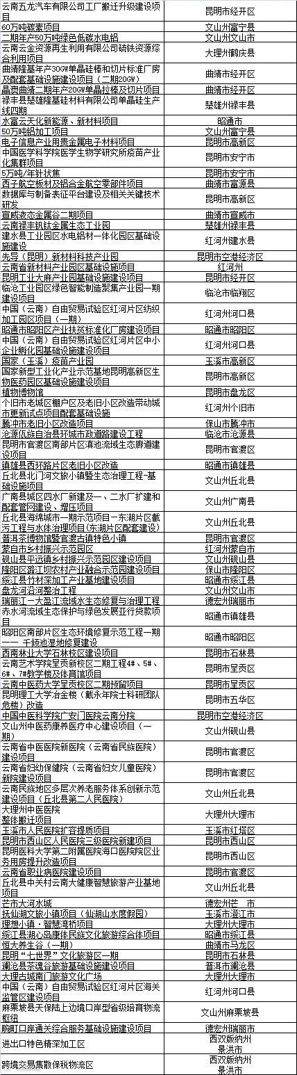 近日,云南省发展和改革委员会发布《关于印发云南省2021年“四个一百”重点建设项目计划的通知》,公布云南省2021年“四个一百”重点建设项目计划表,详情如下: