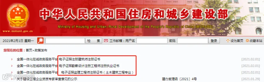 近期,住建部陆续公布新版一级建造师、二级建造师、监理工程师注册证书(土木建筑工程专业)、勘察设计注册工程师、注册建筑师等电子证照样式。