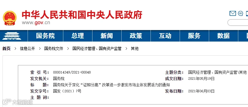 刚刚,中国政府网发布《国务院关于深化“证照分离”改革进一步激发市场主体发展活力的通知》。