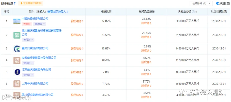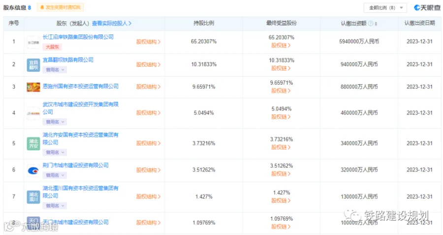 长江沿岸铁路集团湖北有限公司股东信息▲