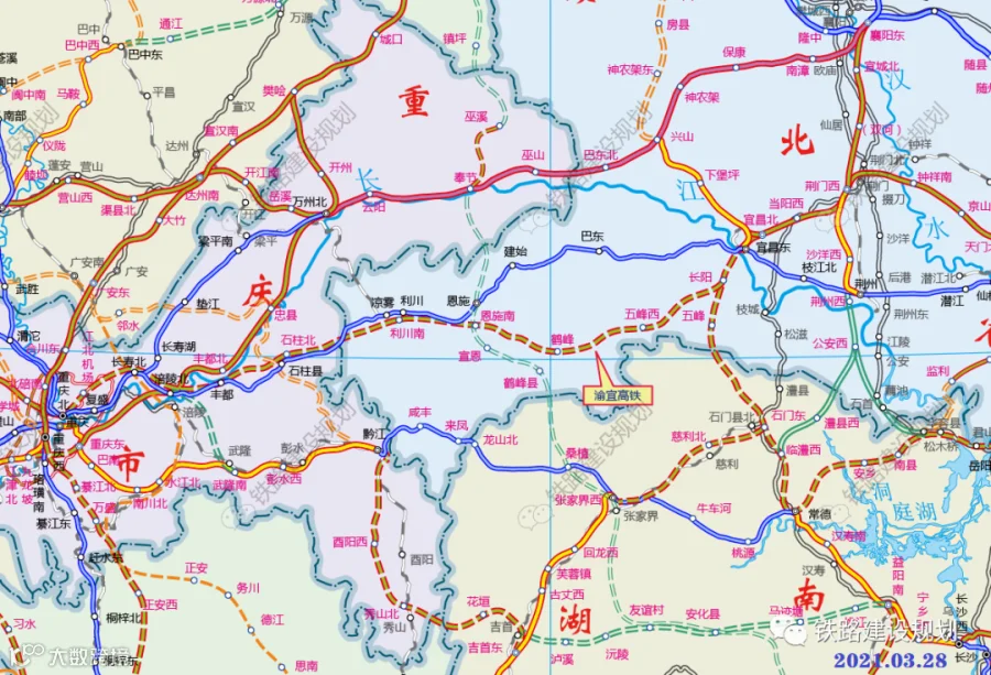 项目位于湖北省和重庆市境内,线路东起湖北省宜昌市,向西经湖北省长阳、五峰、鹤峰、恩施、利川,重庆市石柱、丰都等县市,终至重庆市涪陵区。新建正线长度441.14公里(其中湖北省境内304.69公里)。湖北段拟设宜昌北、长阳、五峰、鹤峰、恩施南、利川南等6座车站。