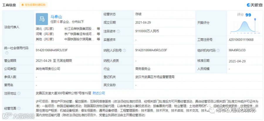 长江沿岸铁路集团湖北有限公司工商注册信息▲