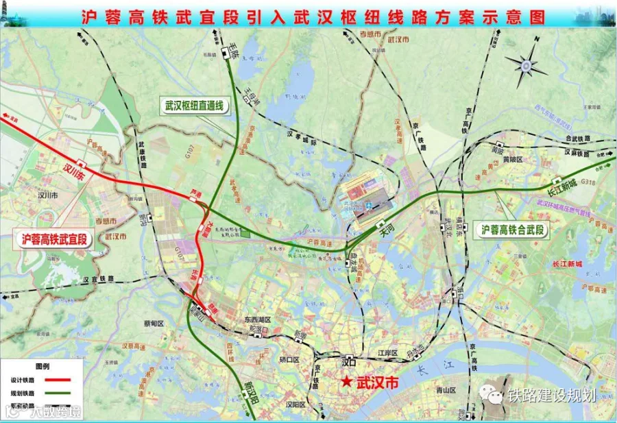 线路从汉孝城际铁路毛陈站引出,经东西湖引入新汉阳站,新建线路约70公里,同时新建黄家湖至南湖东联络线约8公里衔接武九高铁和京广高铁,总投资约240亿元。规划新建新汉阳站和武汉白沙洲公铁两用特大桥。