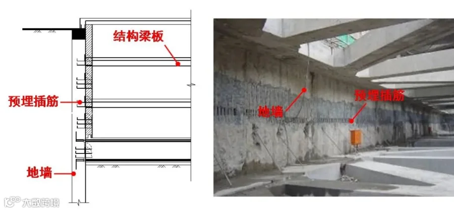 4、为避免支护结构的浪费,可利用原本在基坑完成后通常废弃的围护排桩作为正常使用阶段主体地下结构一部分,形成“桩墙合一”,围护桩可承担大部分的土压力,减小地库外墙受力,可有效减小地下室外墙厚度、边桩数量,增大地下室建筑面积,实现节能降耗,具有较好的经济效益。