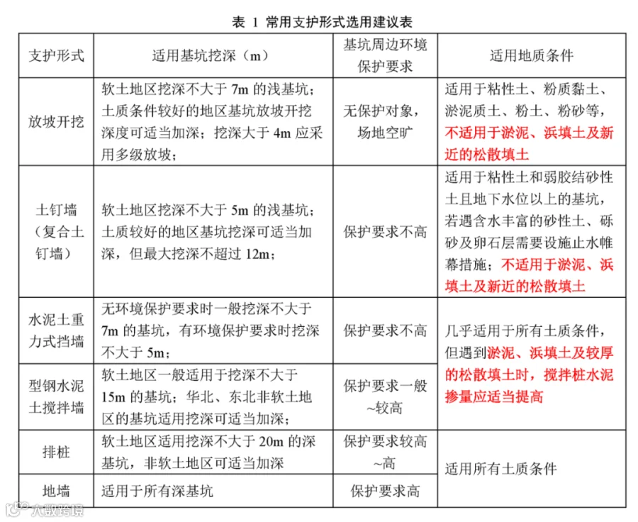 一般同等条件下支护形式的造价从低至高依次为:放坡开挖<土钉墙(复合土钉墙)<水泥土重力式挡墙<型钢水泥土搅拌墙(SMW工法)<排桩<地墙。