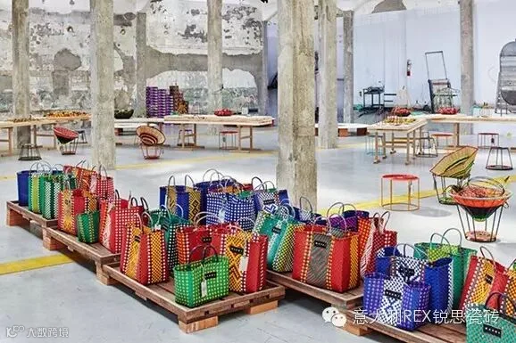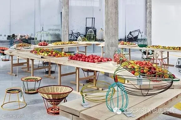 曾为米兰时装周带来花展的MARNI此次则为旗下家居产品打造了Marni Mercado de Paloquemao展示空间。以哥伦比亚首都波哥大的传统市集为灵感设计的装置犹如一个充满异域风情的水果果园,正好呼应MARNI推出的一系列精选家居,如金属及PVC制作的编织椅,手工定制、饰有经典印花的锡制盘子等。