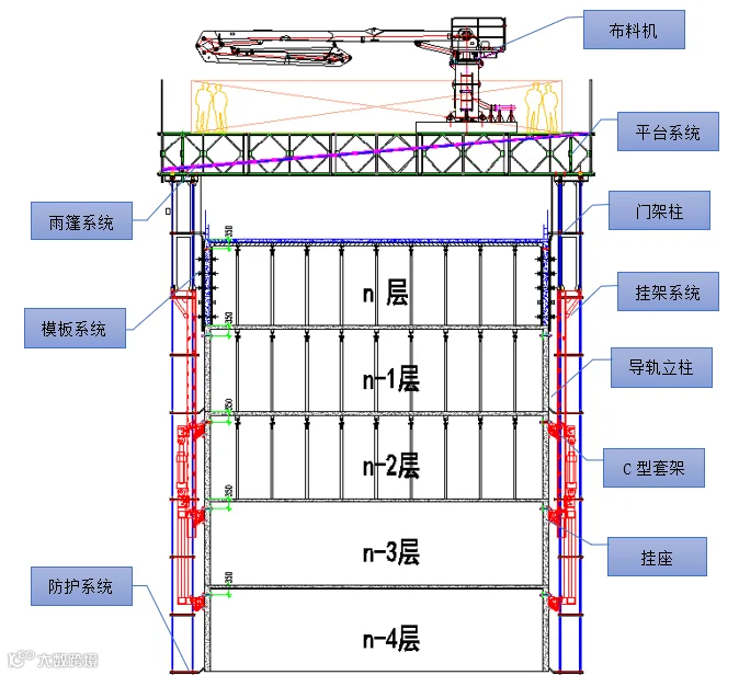 ▲“住宅造楼机”系统组成剖面图