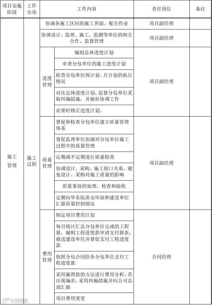 (d)施工阶段要对工程进度、工程成本进行严格的控制,加强过程和环节的控制,确保节点工期和总工期,确保工程投资控制在预算范围内。