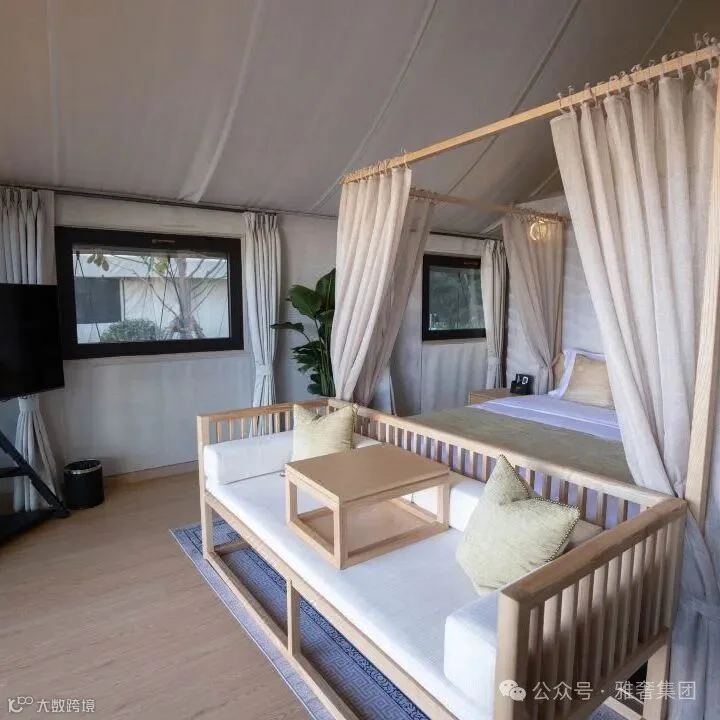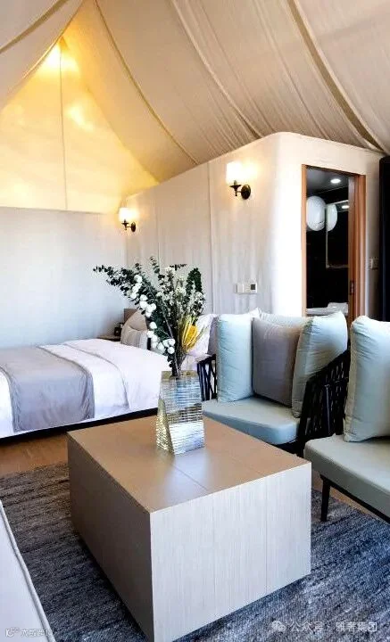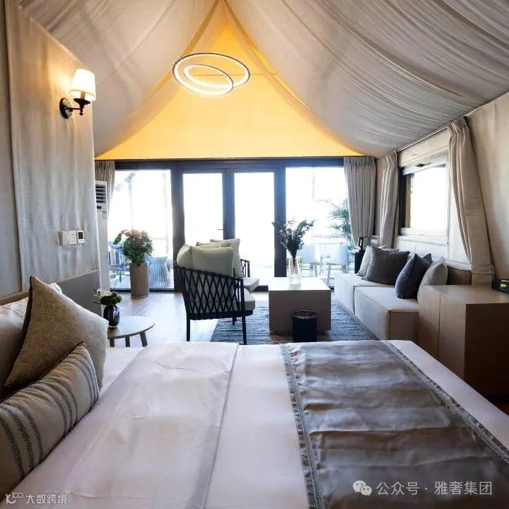 得益于高保温隔热性能,雅奢家的帐篷适用于各类应用场景,无论是在戈壁、雪地还是草原、海边建度假区,均可提供量身定制的解决方案。在壹凡森海帐篷营地的应用中,雅奢家帐篷自带的特色住宿体验成为一种天然优势,让游客在享受大自然美景的同时,也能感受到奢华的住宿体验。这种独特的住宿方式不仅满足了游客对高品质生活的追求,还提升了营地的整体吸引力和市场竞争力。