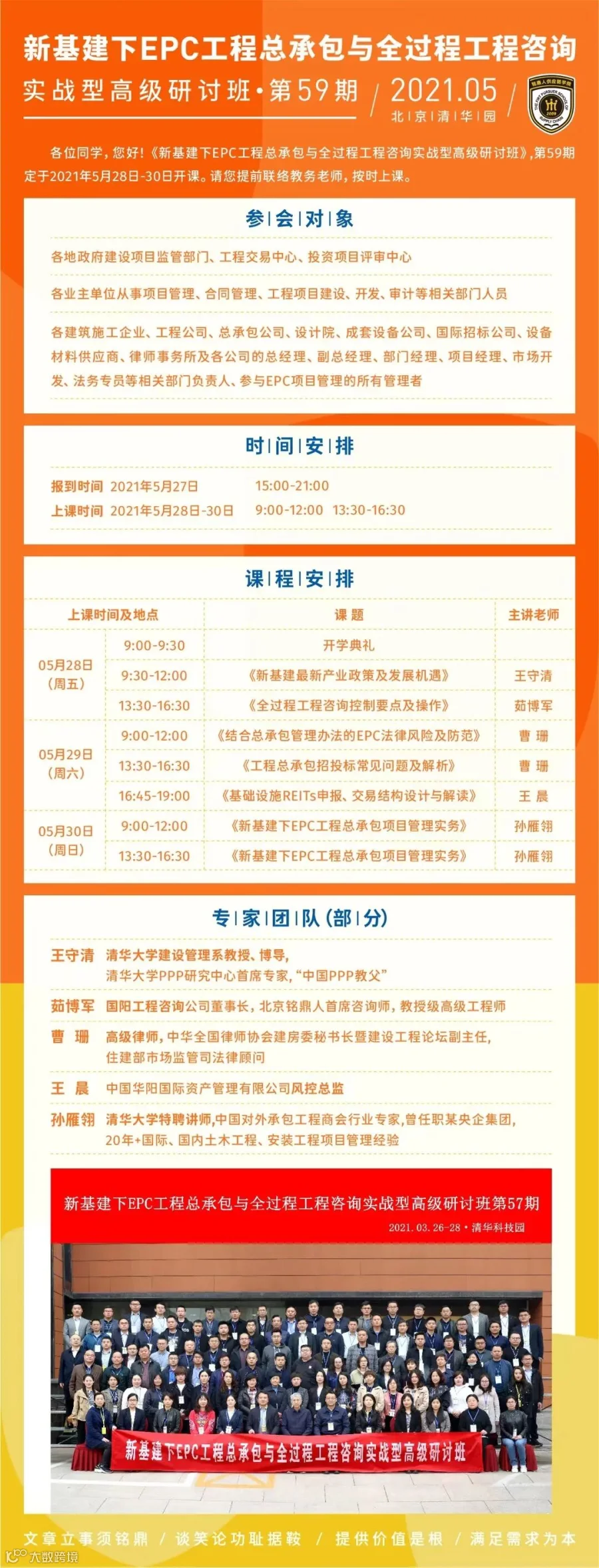 欢迎加入:新基建下EPC工程总承包与全过程工程咨询—实战型高级研讨班