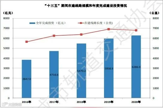“十三五”期间,累计新增运营线路长度为4351.7公里,年均新增运营线路长度870.3公里,年均增长率17.1%,创历史新高,比“十二五”年均投入运营线路长度403.8公里翻了一番还多,五年新增运营线路长度超过“十三五”前的累计总和;累计完成建设投资26278.7亿元,年均完成建设投资5255.7亿元,比“十二五“翻了一番还多;累计共有35个城市的新一轮城轨交通建设规划或规划调整获国家发改委批复并公布,获批项目中涉及新增规划线路长度总计4001.7公里,新增计划投资合计约29781.9亿元。运营、建设、规划线路规模和投资跨越式增长,城轨交通持续保持快速发展趋势。