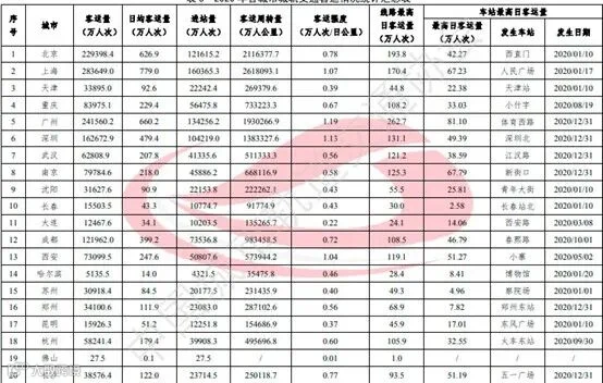 2020 年各城市城轨交通客运情况详见表3。