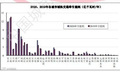 图17 2020、2019年各城市城轨交通总牵引能耗