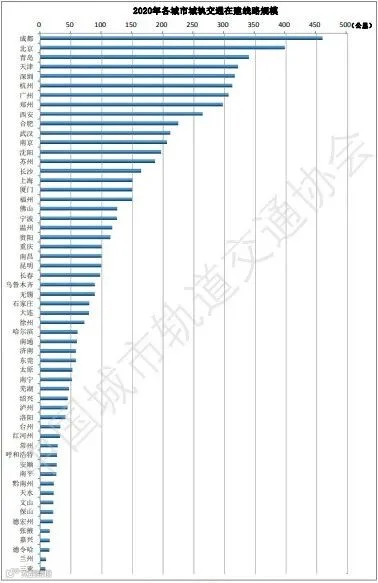 图21 2020年各城市城轨交通在建线路规划