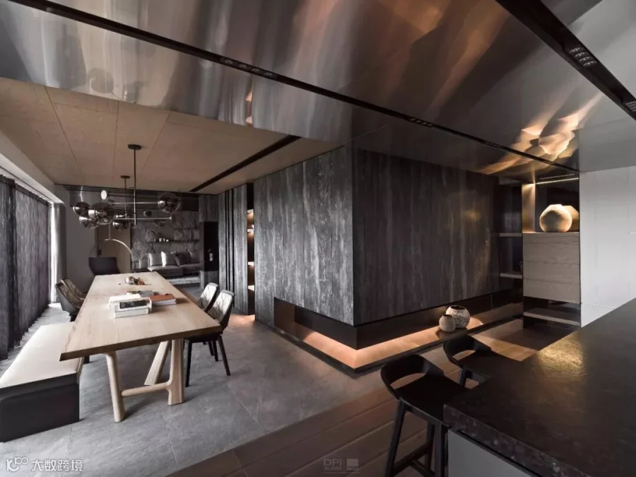 唐忠汉先生希望能够透过各种不同的材料搭配处理,去传递对于空间的感受,多变化、神秘、有层次、丰富、空间体验的感受,所以在这个个案里面运用了许多不同的材料的搭配。