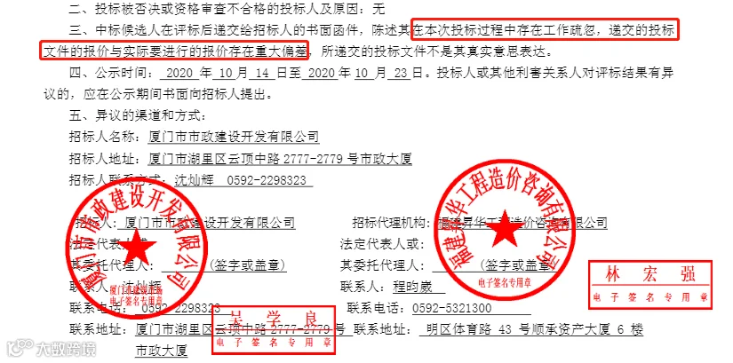 重新公示的信息显示,中标候选人在本次投标过程中存在工作疏忽,递交的投标文件的报价与实际要进行的报价存在重大偏差,这才导致了中标价比招标控制价相差十万八千里的乌龙事件。