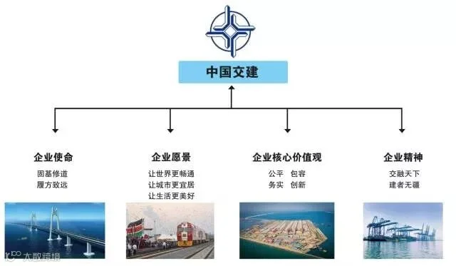 中国交建的企业logo是由4个大写字母C组成,以深蓝色作为公司的标准色,象征中国交通作为中国交通基础设施建设行业旗舰所具有的高科技、现代化、基础性、大型化等特征。同时,也体现了公司无限的创造力和巨大的成长空间。