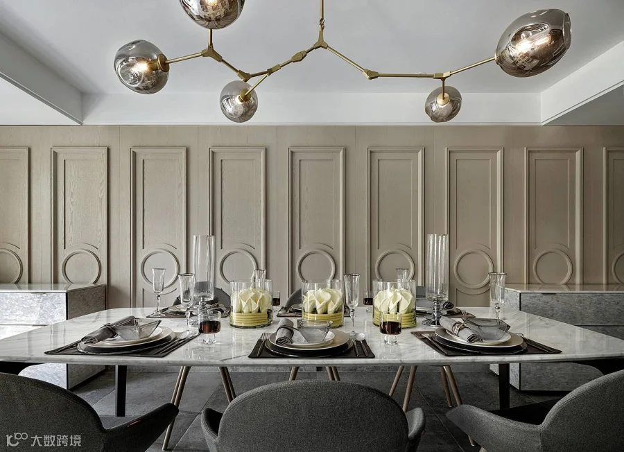 餐厅序列感极强的主题墙造型全部由高端定制现场安装